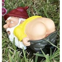 Shock some life into your guests and neighbors as they are greeted with a full moon provided by your garden inhabitant. Bent over at the waist and letting his pants down to display his moon shine for everyone to see. This durable PVC gnome will widen the eyes of even the most unobservant passersby. PVC, 8 x 6 x 8".