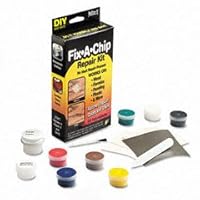 RESTOR-IT-Fix a Chip quickly and easily repairs: burn holes; chips; cracks; scratches; blemished and imperfections. Works on: wood; formica; paneling; plastic or any hard surface. Matches popular colors and grains. Kit contains: 7 Intermixable Colors; Color Mixing Guide; Sand Paper; Grain Patterns; Clear Finish; Spatula; Mixing Cups and Complete Instructions. Made in USA.