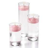 Set of 36 Cylinder Vases and 36 Floating Candles 3". This set includes twelve of each size: 6" Tall x 3 3/8" Wide, 7 1/2" Tall x 3 3/8" Wide, and 10 1/2" Tall x 3 3/8" Wide. Diameter of opening is approximately 3 1/4". These work perfectly with our hand poured 3 inch floating candles. Floating candle size: 3" Wide x 1.4" Tall. Burn time is approximately 8-10 hours. Choose from 7 different colors! This set will be professionally packed to arrive quickly and undamaged. We ship QUICK! All orders shipped within 1 business day of your order. All orders received by 3:00 PM will be shipped the SAME day. Need your Candles Quick? Order from Quick Candles! Have a question? Need a larger quantity? Call our friendly customer service at 1-800-928-6175.