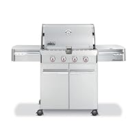 (More customer reviews)I bought this grill for my recent let's say, milestone, birthday. I researched grills for over 2 months. I knew Weber was a good brand but wished to consider other options. My research always pointed back to "buy a Weber". Weber's customer service was always rated A-1, they've been bbq/grilling experts for years, and you know they'll be around in the future. The one kicker for the Summit S-420 model over a stainless Weber Genesis S-320 was a comment from a friend of mine with a nice stainless Jenn-Air model found at Lowes. He wished the rotisserie was positioned higher on the Jenn-Air. In my assessment of grills, I had never considered the importance of the rotisserie height. After looking at the Genesis S-320 and Jenn-Air models again, it became clear that a turkey or large roast might not work on the rotisserie of the other models. The Summit S-420 and other Summit grills solves this problem by providing a much higher rotisserie position. Add to that a much taller cover, and you'll see there is greater height for convection around whatever you're cooking. I've grilled hamburgers, salmon, T-bone steaks, and slow cooked smoked pork ribs - all to perfection. No need for a high end smoker feature that permanently reduces grill space - an aluminum foil tray with wood chips atop one of the burners works fine. The Snap-Jet individual burner ignition system was tricky at first. Once you actually read the instructions - Hey I'm a guy - you'll find the technology is easy and reliable. Quality is the final key to this grill. The stainless everything is impressive and high quality. The side-burner is more than an afterthought and mimics many high-end kitchen gas cook-tops. Even the doors of the storage area below are double sided for sturdiness. I usually have a minor stint of buyer's remorse after an expensive purchase. I have none. With this grill I can proudly say it's one of the best purchases/investments I've made in years!!!!