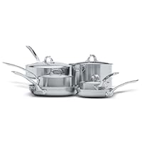 Viking professional cookware products are manufactured with exclusive multi-ply construction. Multi-Ply construction is a specially designed combination of stainless steel and aluminum alloys for lifetime performance, durability with easy cleanup, quick and even heat distribution. The Multi-Ply material used in Viking cookware is the most advanced formulation of stainless steel and aluminum alloys in the world today. This exclusive combination of layers conducts heat more evenly and quickly to give you better results. Known for its exceptional appliances, its professional cookware products are manufactured in Belgium yet designed in the U.S., so you get the best of both worlds. If you're choosy about how your cookware not only looks but also performs, Viking is the ultimate choice. Like the professional appliances that preceded this distinguished cookware line, the quality is the outstanding feature. Each piece features an exclusive 7-ply construction of 18/10 stainless steel and aluminum alloys paired with ergonomic handles that have stay cool vents for comfort while cooking. You may use Viking cookware on any heating surface, including halogen, induction and ceramic, plus gas and electric.18/10 Stainless interior and exterior, 7 ply construction with 5 ply on the stock pots, aluminum core for even heat distribution, used on any cooking surface, ergonomically designed, cast s/s, and stay cool handles. This set includes: 1.5-qt. Covered Sauce Pan, 3-qt. Covered Sauce Pan, 3-qt. Covered Sauté' Pan, 8-Inch Fry Pan, 11-Inch Fry Pan, 8-qt. Covered Stock Pot.The Multi-Ply material used in Viking cookware is the most advanced formulation of stainless steel and aluminum alloys in the world today. This exclusive combination of layers conducts heat more evenly and quickly to give you better results.