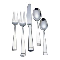 Waterford 18/10 Stainless Steel 65-Piece Flatware Set includes twelve 5-piece place settings, plus five serving pieces: tablespoon, pierced tablespoon, sugar shell, cold meat fork, and butter knife complete with an exclusive, solid hardwood, flannel-lined flatware chest. Distributed by Reed & Barton.