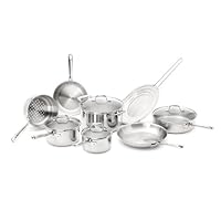 Emerilware 12-Piece Cookware Set Get quick, even heating with Emerilware's 12-piece cookware set. Featuring a three-ply construction, this set has an aluminum core that is bonded between two layers of 18/10 stainless steel on the bottom and up the sides of the pans. Each piece has a long, ergonomically designed handle for balance, control, and comfort. The sauce pans, saute pan, andDutch ovencome withoven safe up to 350° F,tempered glass lids with a stainless steel handle.This set was designed by renowned chef Emeril Lagasse and makes for a beautiful presentation. This set is dishwasher safe and the pots and pans are oven safe up to 550°F. Suitable for gas, electric, ceramic glass, or induction stovetops. This stainless steel set includes: 8 inch fry pan 10 inch fry pan 1.5 quart sauce pan with lid 2.5 quart sauce pan with lid 3 quart saute pan with lid 6 quartDutch ovenwith lid Steamer insert Splatter screen Features: 18/10 stainless steel Aluminum core Ergonomically designed handles Saucepans, saute pan, andDutch ovenhaveoven safe up to 350° F,tempered glass lids Broiler safe Pots, pans oven safe to 550° F Safe on gas, electric, ceramic glass, or induction stovetops Dishwasher safe Emerilware StainlessLifetime Warranty Model: E914SC64