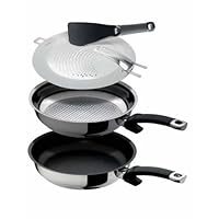 (More customer reviews)Very nice set of frypans. I have used both and they both work perfectly. They have a thick heavy base that heats the contents of the pan very quickly. Much quicker than my Viking pans. The nonstick is very high quality and looks to last a very long time. The stainless steel in these pans is also very high quality. The flip up spatter guard is just the icing on the cake and works as well as the pans. The Rolls Royce of frypans.