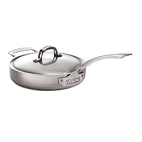VSC0306To sautis to cook food quickly over moderately high heat with a minimum of fat. This saute pans wide, flat bottom produces evenly browned foods, while its straight sides help to prevent spattering and spilling as you turn the food. This 3 quart saute pan includes a lid. Features: -Exclusive Multi-Ply construction of stainless steel and aluminum alloys -Multi-Ply construction:-Includes 18/10 stainless steel for cooking surface and exterior on all vessels -Suitable for all other cooking surfaces; gas, electric, halogen, ceramic and induction -Includes a layer of ''magnetic'' stainless steel for induction cooking capability -7-ply material that extends throughout the vessel including the sides -Ergonomic handles constructed of investment-cast stainless steel and have stay-cool vent design -All handles are stainless steel, double-riveted to each vessel -All cooking vessel and handle designs created by Viking Design and exclusive to Viking -Manufactured in Belgium -Dishwasher safe, but hand washing recommended for superior appearance -Lifetime warranty against manufacturing defects Cookware Anatomy Brochure Multi-Layer Cookware Use & Care Manual