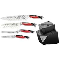 This Battle Station Combo Set is ready for your kitchen, with the 8" "Big Stick" Chef knife for the big jobs, 5.5" "Chopper" Santoku for the smaller cuts, 5.5" "Dragon Dagger" Utility for tough veggies, sandwiches, breads and cheese. The 4" "Lil'Guy" Paring knife for peeling, and garnishing of small fruits & veggies! All these knives fit into your "Battle Station" 17 slot block and will have you ready for almost any kitchen task. This makes the perfect gift set for the professional cook in the family.