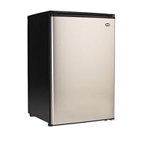 Thoughtfully constructed, the appliance has earned an Energy Star rating, which means it meets strict energy-efficiency guidelines set by the EPA and U.S. Department of Energy. Energy Star products can help save up to a third on energy bills, as well as greatly reduce greenhouse gas emissions, all of which means the convenience of properly chilled meals, snacks, and beverages without excess costs or impact on the environment. Other highlights include a manual dial for adjusting the thermostat, an easy-to-clean Eclipse series black interior; a clear-coated fingerprint-resistant platinum door with a reversible door hinge (so it can be opened from the left or the right), a smooth space-saving back (no unsightly coils), a durable countertop for additional workspace, and two leveling legs to ensure stability even if placed on uneven ground. The refrigerator measures 22-3/4 by 21-3/8 by 33-3/4 inches.