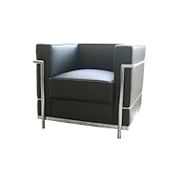 A replica of the revered LC2 chair created by Le Corbusier in the 1920s, this leather lounger is handsome and modern without breaking the bank. Surprisingly elegant for its blocky shape, the chair features wrap-around stainless-steel tube framing that is durable and sleek. The high-density foam fill of the cushions is covered in black leather and leather-match vinyl with a refined piped edge for a clean finish. Great in the living room, study, or urban bedroom, the chair measures 27-1/2 by 30 by 26 inches. The chair also comes in white, and Le Corbusier-style sofas and chaise lounges are also available from Baxton Furniture Studios.