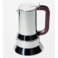 Designed by Richard Sapper, the Alessi Espresso Coffee Maker is made entirely of 18/10 stainless steel, polished or coated with black silicone resins. It holds up to 10 ounces of water to produce up to 6 cups of espresso.