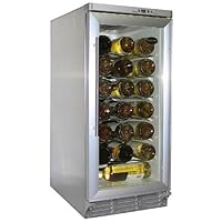 Keep up to 32 bottles properly chilled with this compact freestanding wine chiller--a popular replacement for the trash compactor. The appliance features a glass door for convenient viewing and works great as a show piece in the kitchen or for those just beginning their wine collection. Designed to cycle, the unit's normal temperature fluctuation of 5 degrees prevents it from excessive cycling. Other details include sturdy shelf racking for individual bottle storage, an interior light, a digital display, and a front-venting design, which allows the unit to be built-in under a counter. The sleek-looking wine chiller measures 23-1/4 by 15 by 34-1/2 inches and carries a one-year limited warranty.